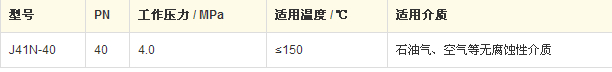 閥門具體型號為j41n-40,公稱通徑常用的從DN10~DN150,適用溫度小于等于150攝氏度,適用的介質有石油氣、空氣等無腐蝕性介質。